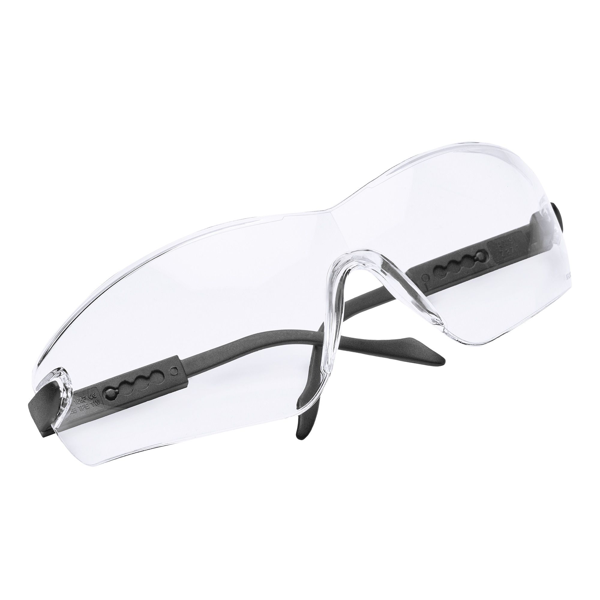 bezbarwna soczewka z tworzywa sztucznego, zapewniają ochronę przed szybko poruszającymi się cząsteczkami o niskiej energii
